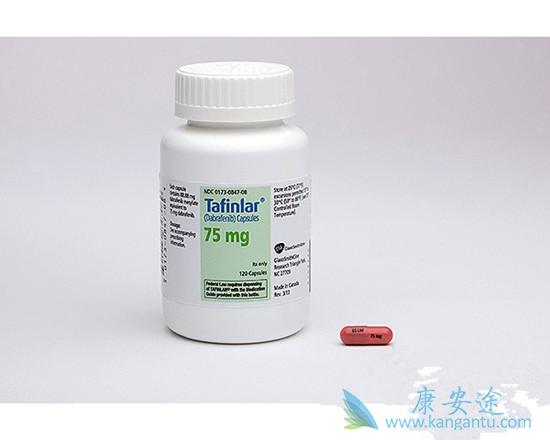 专家进行独立审查的结果显示近一半的患者(47%)获得部分缓解(PR),而3%的患者获得完全缓解(CR),而DTIC有效的患者仅占6%。这种新药也提高了无进展生存期,达拉非尼和达卡巴嗪用药组的中位无进展生存时间分别是5.1个月和2.7个月。威罗菲尼是被美国食品药品管理局和欧洲药品管理局新近批准用于BRAF-突变阳性的黑色素瘤的另一个药物,其疗效与达拉非尼类似。但是,达拉非尼可能优于威罗菲尼,因为研究显示达拉非尼的皮肤副作用没有威罗菲尼严重。该研究组还指出该研究中的患者很少发生严重的不良反应。