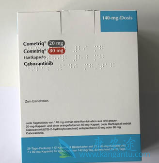 卡博替尼主要靶点:C-met,VEGFR,也有效作用于Ret,Kit,FLT1,FLT3,FLT4,Tie2和AXL,微弱抑制RON和PDGFR-β。卡博替尼适应症和用途:适用于治疗进展期、转移性的甲状腺髓样癌(MTC)患者,伴有C-met扩增的晚期非小细胞肺癌(NSCLC)患者。卡博替尼剂量:用于治疗转移性甲状腺髓样癌的推荐剂量为每日140 mg,用于晚期非小细胞肺癌的推荐剂量为每日60mg。