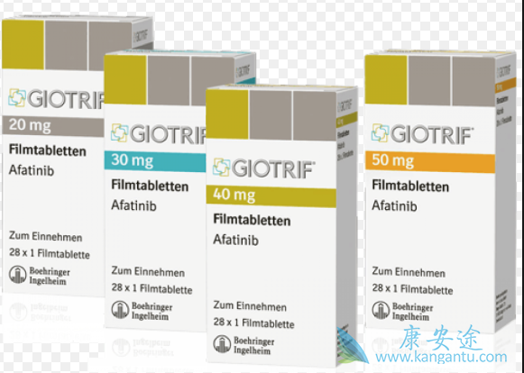 因此,相比其它标靶药物,阿法替尼与ErbB家族受体不可逆转地结合的特性能够提供更持久、选择性、共价及完全地终断通过癌细胞的信息传导,从而带来独特的抗癌治疗效益,更具潜力去抑制广泛类别的肿瘤细胞增长,其疗效亦更显著。阿法替尼的剂量和给药:推荐剂量:40mg口服,每天1次、指导患者在进餐前至少1小时或后2小时服用阿法替尼,剂型和规格片:40mg,30mg,20mg,阿法替尼的警告和注意事项:大疱和剥脱性皮肤疾病:0.15%患者有严重大疱,起泡,和去角质病变。对威胁生命的皮肤反应终止药物。对严重和延长皮肤反应者不给阿法替尼。
