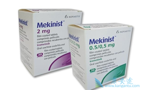 曲美替尼的适应症:(1)单药用于BRAF V600E或V600K突变的不可切除/转移性黑色素瘤;(2)联合达拉非尼(Dabrafenib)用于:BRAF V600E或V600K突变的不可切除/转移性黑色素瘤。BRAF V600E突变的转移性非小细胞肺癌。(3)使用限制:MEKINIST不适用于接受过BRAF酪氨酸激酶抑制剂治疗后疾病进展的黑色素瘤。规格:0.5 mg,2 mg;片剂,推荐用法用量:(1)黑色素瘤:使用本药前应确定肿瘤有BRAF V600E或 V600E变异;(2)非小细胞肺癌:联合达拉非尼用药前应确定肿瘤有BRAF V600E变异(3)推荐剂量是每天1次,每次2mg,口服;餐前至少1个小时或餐后至少2个小时后服用。